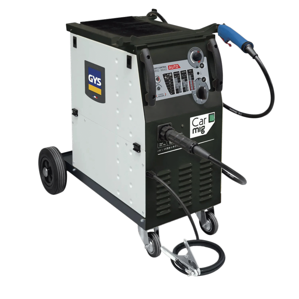 The CARMIG-E AUTO is a 200A single-phase MIG/MAG welding unit designed specifically for automotive repairs. With an intuitive user interface that’s easy to use and quick to set up, it delivers precise welding results whether welding continuously or chain-stitching, on both steel and aluminium, for both structural and thingauge applications. The 4-roller wire feeder offers precise wire feeding for clean, deformation-free welds.